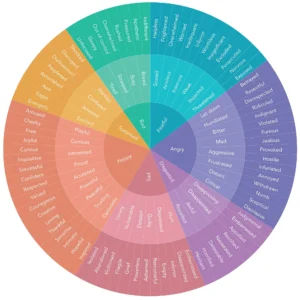 Use the feelings and emotions wheel to communicate complex emotions: